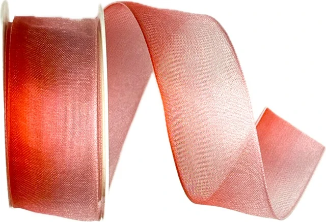 Luxusní taftová stuha v jemně růžovém odstínu s bohatým tkaným vzorem připomínajícím...