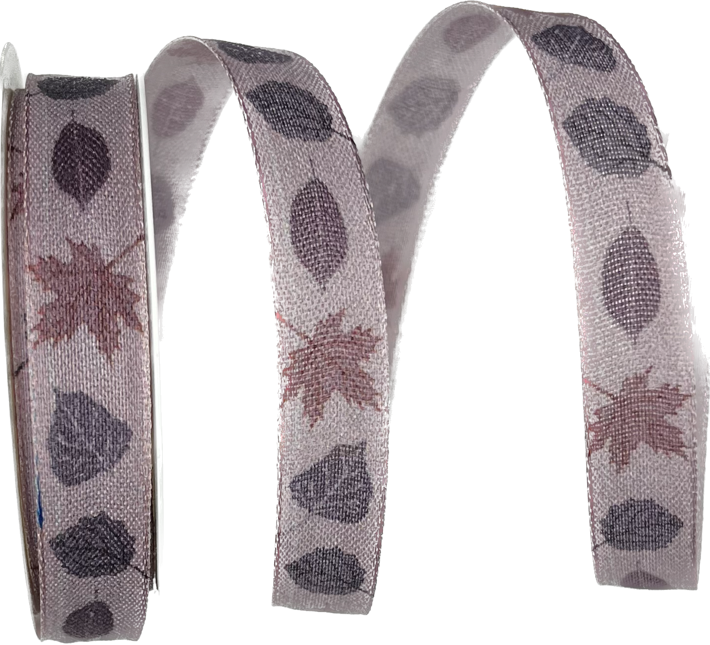 Úzká podzimní bavlněná stuha o rozměru 15 mm × 4 m v přírodním tónu s jemným potiskem listů v odstínech vínové a šedé. Vetkaný vlasec v obou okrajích zajišťuje tvarovou stálost, takže stuha krásně drží při vázání mašlí i při dekorování větších aranžmá.