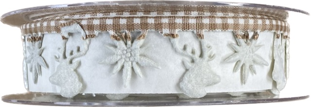 - Vánoční stuha girlandová DEER+EDELWEISS smetanová 25mm x 5m (14,-Kč/m)