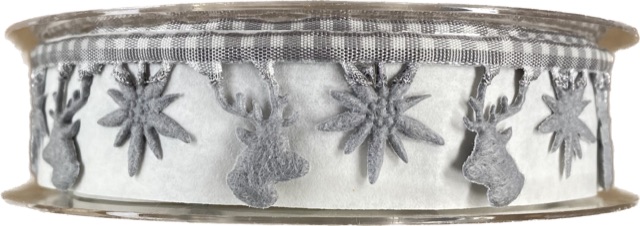 Vánoční stuha girlandová DEER+EDELWEISS stříbrná 25mm x 5m (14,-Kč/m)