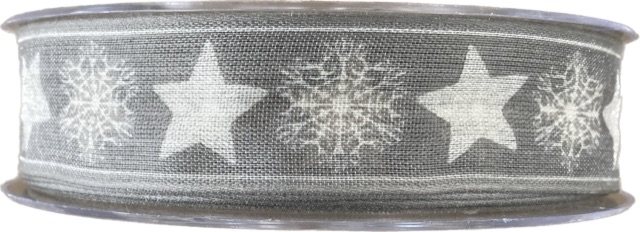 Vánoční stuha bavlněná GRANIT SNOWFLAKES 25mm x 20m (3,- Kč/m)