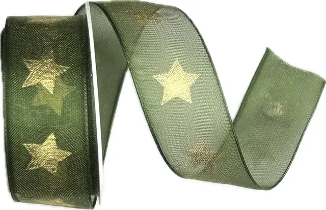 Elegantní zelená organzová stuha se zlatým hvězdičkovým potiskem je skvělou volbou pro tradiční vánoční výzdobu. Transparentní materiál dodává stuze lehkost a jemný třpyt, zatímco vetkaný silonový vlasec v okrajích zajišťuje pevnost a perfektní tvar mašlí.