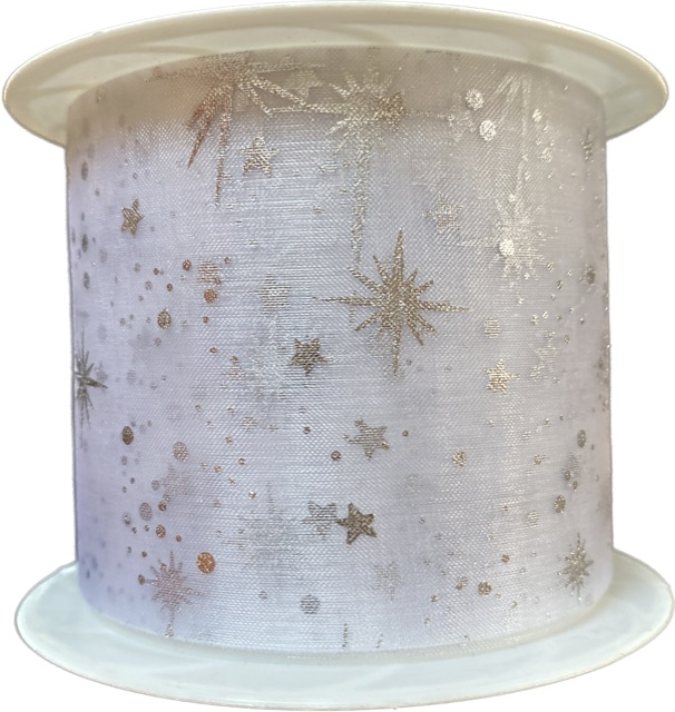 Vánoční stuha organzová ORGANDY STARS bílá 60mm x 3m (13,-Kč/m)