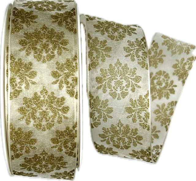 Vánoční stuha organzová ROYAL NIGHT CREME 40mm x 20m (9,90Kč/m)