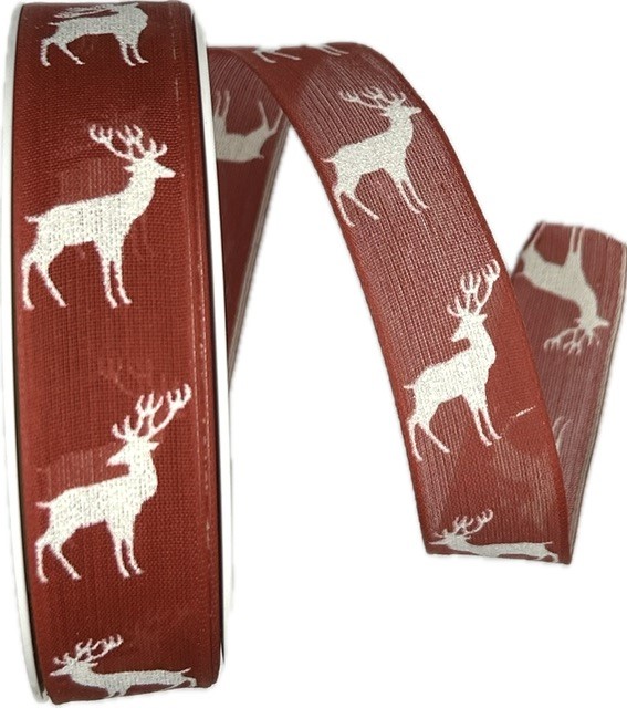 Vánoční stuha červená RED DEER 25mm x 20m (9,- Kč/m)