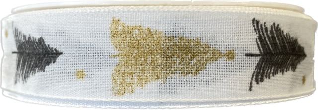 Stuha vánoční bavlněná BLACK AND GOLD TREES 25mm x 20m (8,-Kč/m)