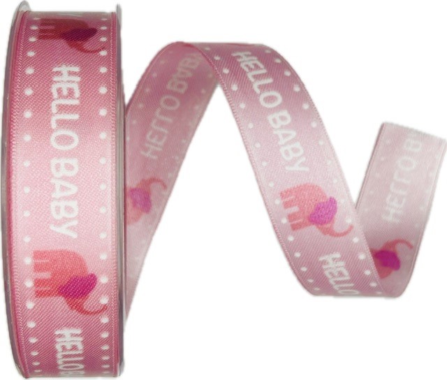 - saténová stuha HELLO BABY růžová s jednostranným potiskem