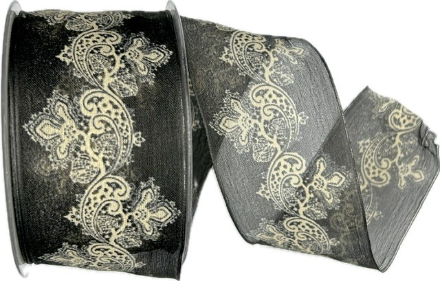 Stuha organzová BLACK POETRY černá s potiskem 60mm x 15m A (10,-Kč/m)