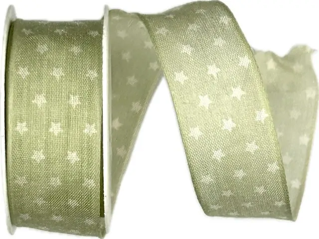 Elegantní úzká vánoční stuha v jemně zeleném odstínu, zdobená glitrovými hvězdami, které dodávají de...