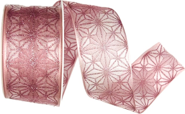 Luxusní organza o rozměru 40 mm × 2 m v jemném růžovo-vínovém odstínu, který působí elegantně a moderně. Průsvitná struktura je doplněna glitrovým potiskem hvězdicových ornamentů, které dodávají stuze slavnostní a noblesní vzhled. Vlascový lem zajišťuje perfektní tvarovou stálost, takže stuha krásně drží při vázání mašlí i bohatých dekorací.