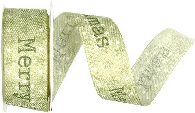 Vánoční stuha X-MAS STARS pastelově zelená 25mm x 2m (5,-Kč/m)