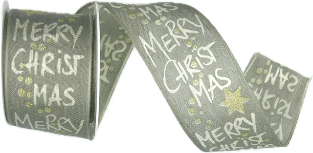 - Vánoční stuha látková MERRY CHRISTMAS stříbrná 40mm x 2m (14,-Kč/m)