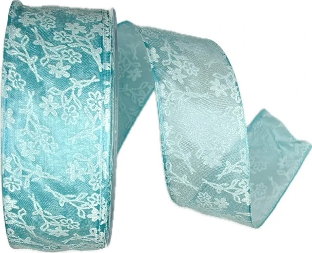 Dekorační taftová stuha Whispering Meadow – Butterflies & Birds přináší jemnou atmosféru rozkvet...